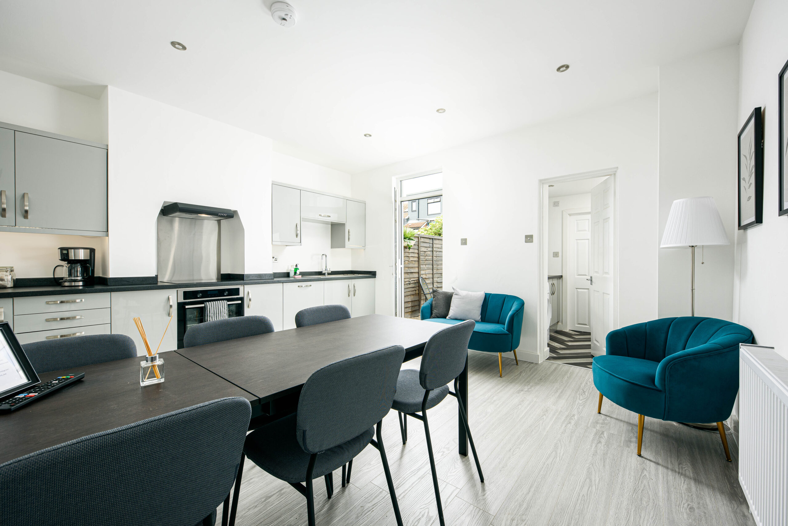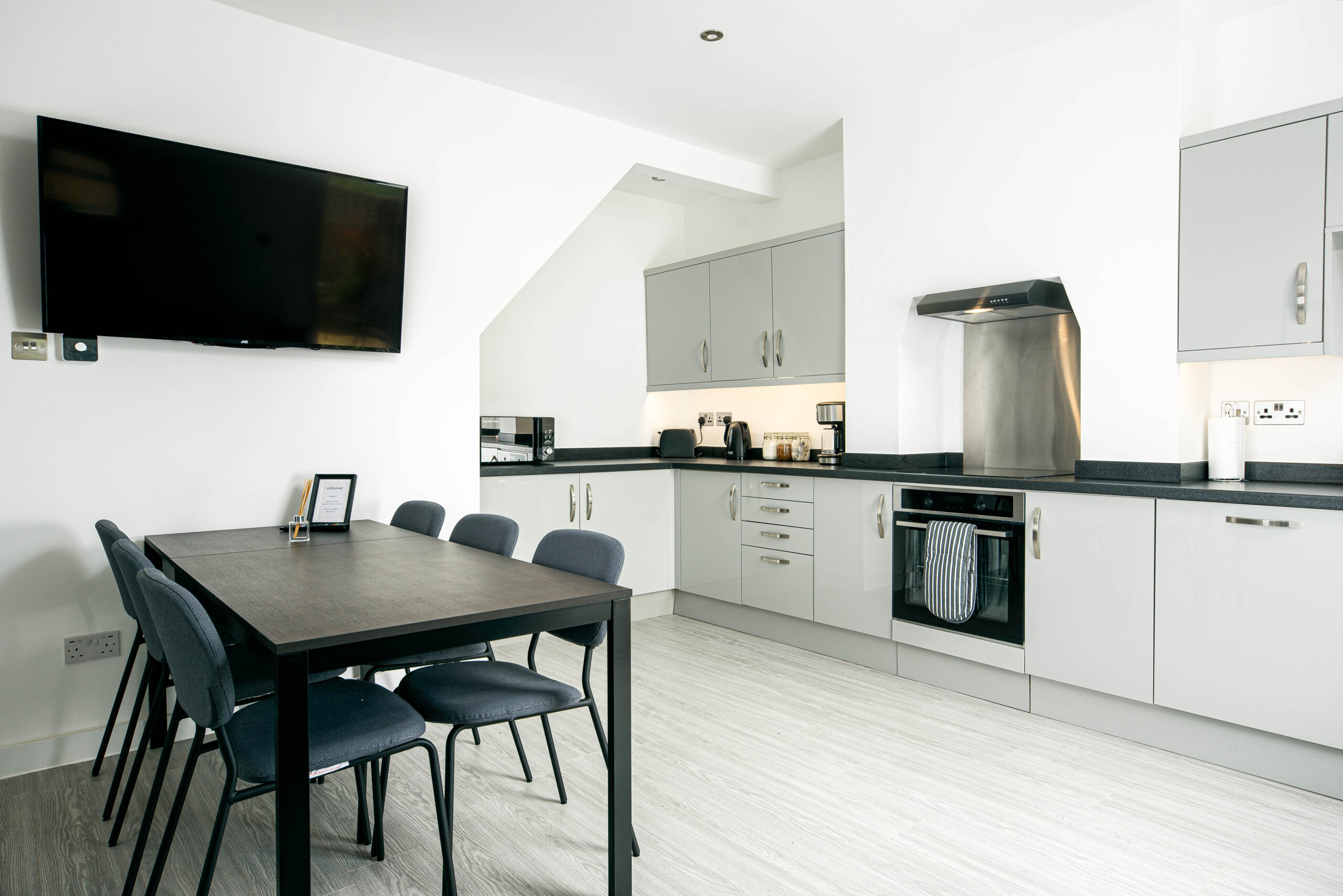 There is also a downstairs bathroom, utility area with washing machine and tumble dryer and large kitchen/dining area with a smart TV.